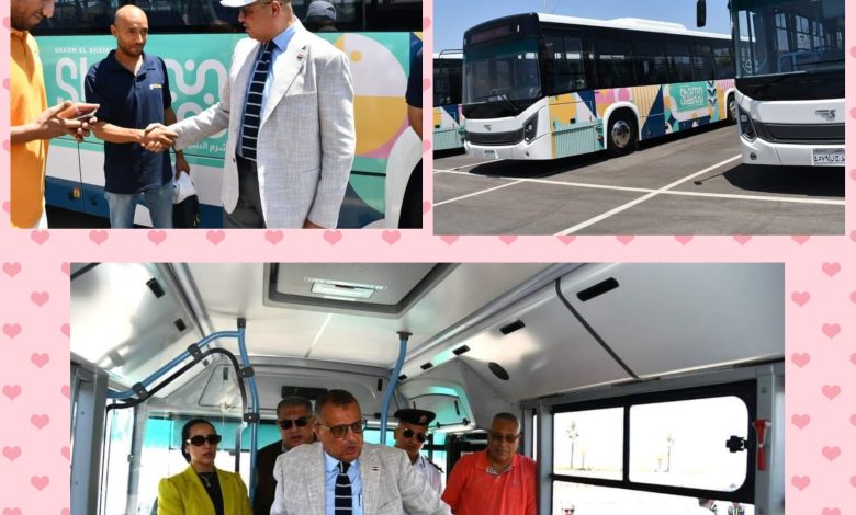محافظ جنوب سيناء يشدد على الحفاظ على المال العام وحسن معاملة المواطنين والزائرين والأمانة عند تشغيل عدد ( 5) حافلات كهربائية بمدينة شرم الشيخ كمرحلة أولى