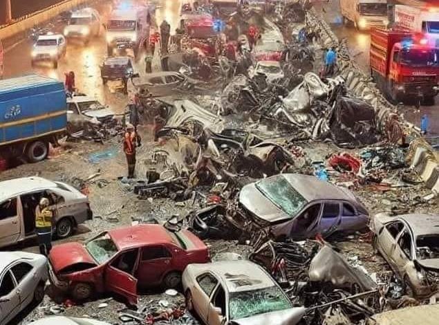 حادث الدائري .. دهس 20 سياره و التحفظ على سائق التريلا المتسبب في الحادث