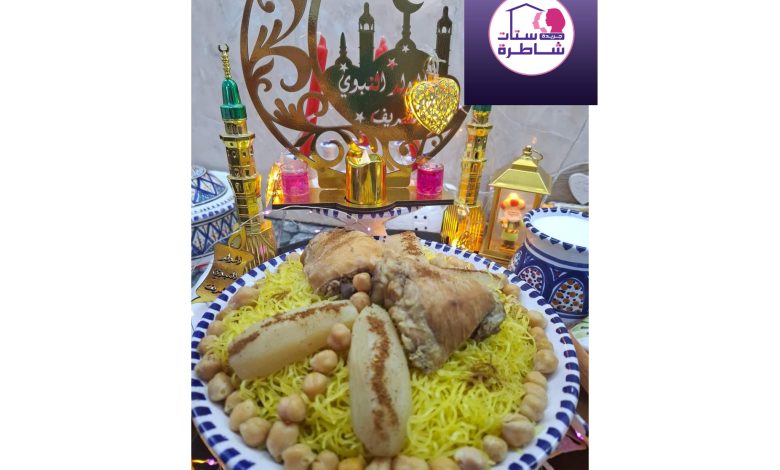 نأخد قدر وكسكاس نحط في قدر كمية من السمن ونزيد شوي زيت تكون الكمية مليحة نخليهم حتى يسخن ونرمي أطراف الدجاج يتقلو نزيد حبة بصل كبيرة مرحية نقليها ونزيد مسكرفج 2 حبات لفت وشوي ملح وفلفل ابيض وعود قرفة نقليهم مليح ونمرق بالماء سخون يكون شوي زيادة ونرمي الحفنة تع لحميصة ونخلط ونحط الكسكاس على القدر ونحط الرشتة تفور تفويرة اولى ومانغطيهاش وبعد نفرغها في الجفنة ونرشها بشوي ماء فيه شوي ملح ونحلها بيديا ونخليها تتشرب ونزيد نرمي الحبات اللفت في القدر ونزيد نرجع الرشتة تفور التفويرة تانية بعد ماتفور مليح نفرغها في الجفنة ونرفد بالغراف من القدر ليدام لملفوق كامل ونحطو فيجفنة ونزيدلو شوي زبدة ونخلطو ونزيد نشربها بيه ونخليها تتشرب شوي ونزيد نرشها بشوي ماء زهر الرشتة نفورها غير 2 تفويرات ومانغطيهاش تتعجن من الماء لقطر عليها