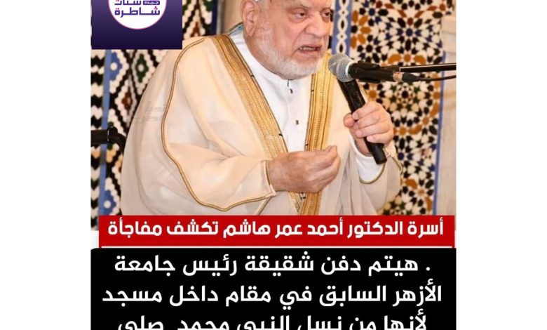 أسرة الدكتور أحمد عمر هاشم تكشف مفاجأة.عن دفن شقيقه هيتم دفن شقيقة رئيس جامعة الأزهر السابق في مقام داخل مسجد لأنها من نسل النبي محمد صلى الله عليه وسلم