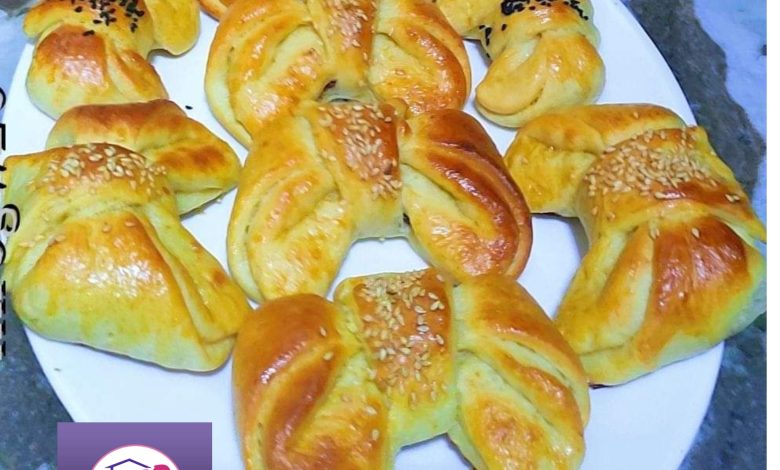 فى بولة ننزل بالدقيق والخميرة والبيكنج بودر والسكر والملح ونقلبهم نضيف كوب الحليب وممكن يستبدل بالماء ونبدا نعجن لو لقيتى العجينة محتاجة شوية مايه زودى هنضيف معلقة زبدة على العجينة ونعجنها نقطعها كور ونغطيها ونسيبها ترتاح عشر دقايق ناخد الكورة نفردها ونحط مكعب شيكولاته او جبنة ونشكلها على شكل فيونكه ونرصها بالصنيه ونسيبها تخمر لغاية ما يتضاعف حجمها ندهن الوجه بخليط صفار بيضة ومعلقة صغيرة قهوة سريعه الذوبان ومعلقتين حليب نقلبهم وندهن الوجه وندخلها الفرن
