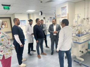 تفقد مدير الفرع خلالها عدد من الأقسام بالمستشفى منها الحضانات والغسيل الكلوي.