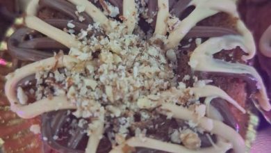 يضاف الخل (حسب الرغبة)، هريسة. ثم تفرغ البيضة في وسط الصحن.