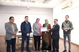 تحت رعاية الدكتورة صابرين جابر عبد الجليل – رئيس الجامعة، واشراف الدكتور أحمد محيى حمزة – عميد الكلية؛ تم تكريم طلاب الفرقة الثالثة قسم الجرافيك شعبة الرسوم المتحركة وفنون الكتاب عن مشاركتهم في معرض “معا نستطيع”، والذي أقيم في قاعة العرض الرئيسية بالكلية، بحضور الدكتور رمضان عبد المعتمد سيد – وكيل الكلية لشئون خدمة المجتمع وتنمية البيئة ومستشار رئيس الجامعة للشئون الفنية والثقافية والتنسيق الحضاري، تحت إشراف السيد الدكتور أحمد حسن محمود الشعراوي – أستاذ الجرافيك المساعد ورئيس قسم الجرافيك سابقا . ومنسق المعرض، و السيد أبانوب عادل كامل صليب – المعيد بقسم الجرافيك.