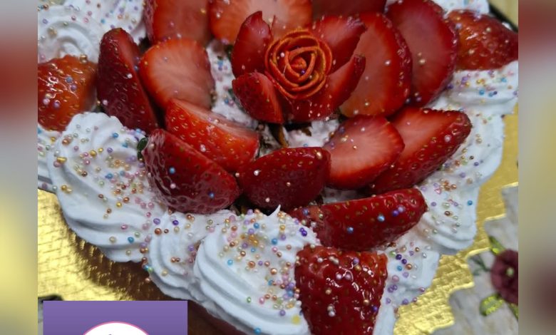 تم ناخد جيب حلواني نضع فيه الشانتي ونزينها من فوق ونضع الفراولة