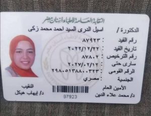 وهى تعمل طبيبة بالوحدة الصحية بقرية جهينة .