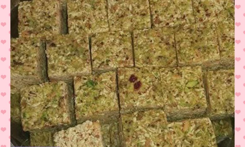 تخلط العجين المقلي و القطر و تضعهم في طبق مغلف بالبلاستيك ثم تتركها تبرد و تقصها في شكل مربعات و يمكن اضافة الجلجلان (سمسم) أو مكسرات الى الخليط حسب الرغبة .