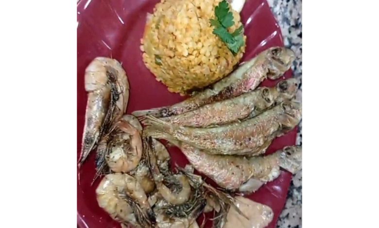ناخدالجمبري نقيه ووضع له التوابل ملح فلفل اسود وكمون