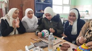 فيما قدمت الفنانة سالي نصر لقاء للتعريف بالخزف وطرق تشكيله وتجفيفه، أعقبه ورشة عمل تشكيلات فخارية بتقنيات الحبال، الدوائر، الشرائح، والقوالب الجاهزة.