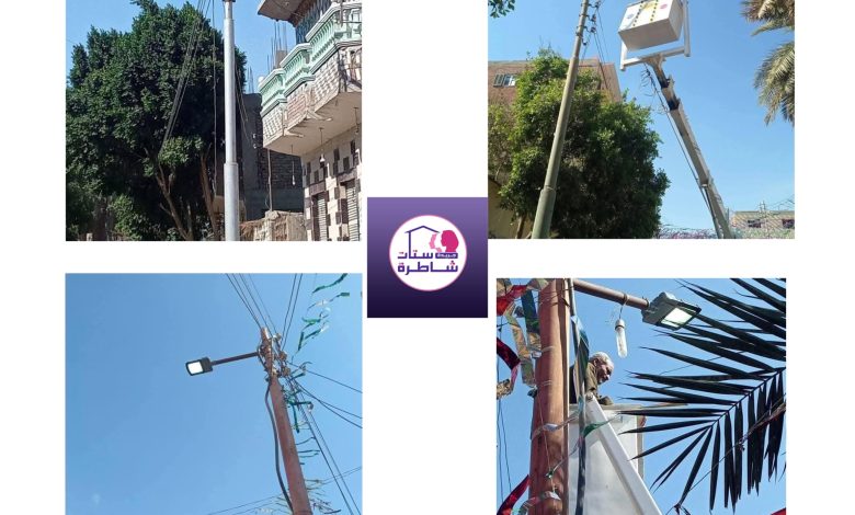 استجابة لمطالب أهالي قرية الزنيقة بإسنا.. تركيب كشافات إنارة حديثة