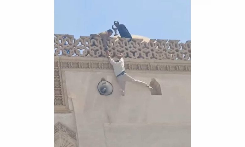 عاجل..... نجاح محاولة إنقاذ شخص حاول إلقاء نفسه من أعلى المسجد الأزهر