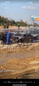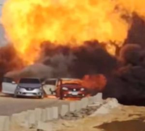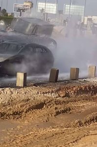 من طريق الواحات أمام جهاز المدينة – الطريق متوقف في الاتجاه إلى أكتوبر – تفحم عدد من السيارات الملاكي