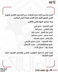 التشكيل الكامل للجهاز الفني لنادي الزمالك . متابعة شريف منصور