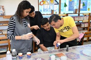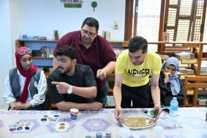 أما في ورشة الفيانسيه، فأتم المشاركون تحت إشراف د. أميمة رشاد تنفيذ عدد من الأطباق والأواني المزخرفة على البورسلين، مستخدمين الحروف العربية والزخارف الإسلامية الدقيقة، بألوان حرارية تميزت بالتوازن والاحترافية.