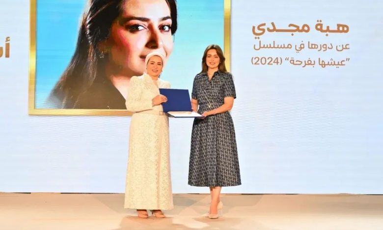 السيدة انتصار السيسي تكرم هبة مجدي ومايان السيد ومصطفى عماد ومينا أبو الدهب
