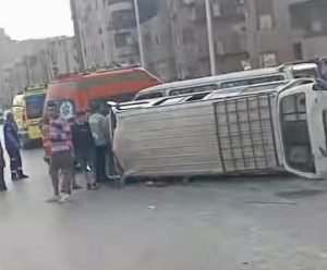 انقـ..ـلاب 3 سيارات ميكروباص أعلى الطريق الدائري بمنطقة بشتيل اتجاه السلام