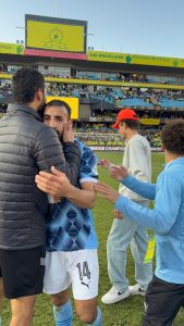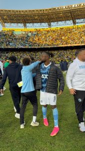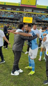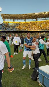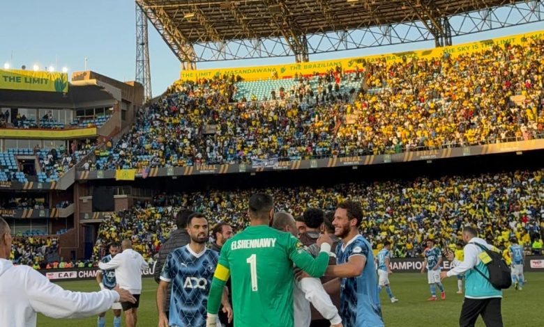 فرحة لاعبي بيراميدز بعد خطف هدف التعادل متابعة غاده المصري أمام صن داونز في ذهاب نهائي دوري أبطال إفريقيا