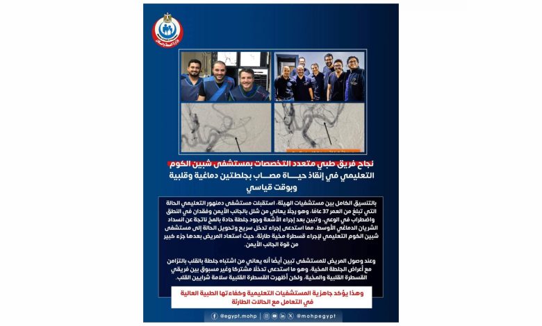 نجاح فريق طبي متعدد التخصصات بمستشفى شبين الكوم التعليمي
