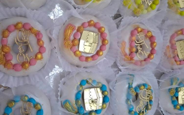 زينتها بعجينة السكر وهي سبحة بثلاثة الوان