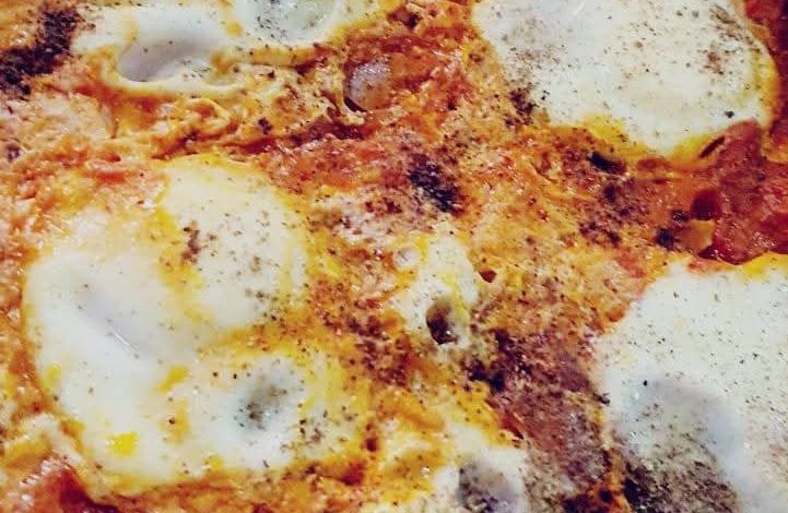 نضع البيض كل حبة بمكان ونضع الملح والفلفل ونغطيها نتركها على نار هادئة