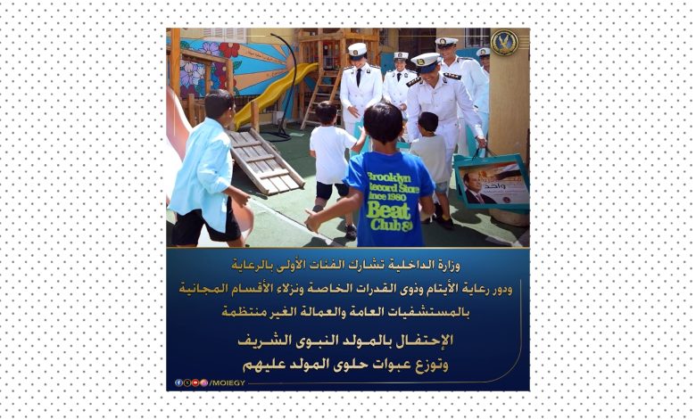 وبمناسبة الإحتفال بالمولد النبوى الشريف.. فقد نظمت وزارة الداخلية زيارات لعدد من مستشفيات الأطفال.. حيث تم إهدائهم عبوات “حلوى المولد النبوى” فى لفته إنسانية تهدف إلى رفع روحهم المعنوية ودعمهم نفسياً خلال رحلة العلاج.