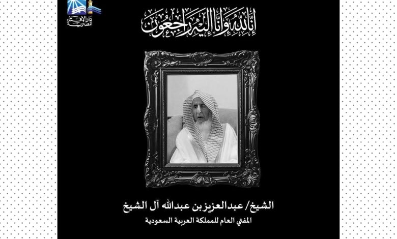مفتي الجمهورية ينعى فضيلة الشيخ عبدالعزيز آل الشيخ مفتي المملكة العربية السعودية