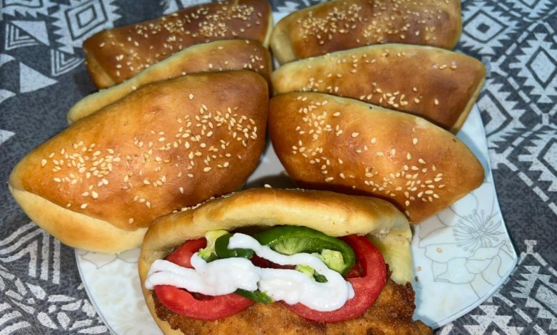 وبعد ما تخمر تقسم كور حسب الرغبه في حجم الساندوتش وتغلق علي بعضها بدون ضغط حتي نحصل علي ساندوتش كما موضح بالصورة ويدهن الوجه بالحليب ويترك يخمر مره اخري ثم يدخل الفرن على درجة حرارة عاليه وعند خروجه من الفرح يغطي جيدا وبعد ما يهدا نبدا في وضع الحشوات المفضله لديك