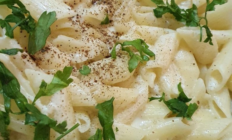معكرونة مسلوقة مع ملح وملعقة زيت