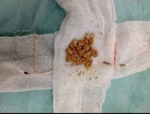 – اللولب الاول نصة في الرحم ومخترق جدار المثانة ومكون علية حصوات اللولب التانى داخل الرحم…وفي بعض الحصوات في قناة مجرى البول …