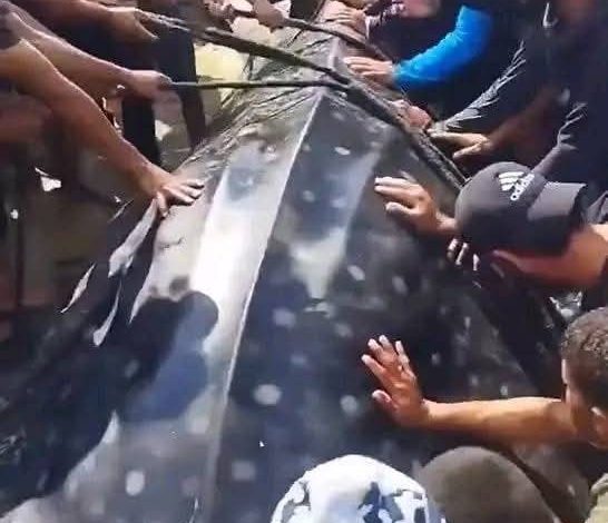 في مشهد مؤثر، عثر سكان غزة على حوت ضخم من نوع القرش على شاطئ خان يونس، يُقدّر طوله بأكثر من 10 أمتار ووزنه بنحو طنين. ويُعدّ هذا النوع نادرًا ومسالِمًا وصالحًا للأكل، ما أدخل السرور على الأهالي بعد انقطاع اللحوم عن القطاع بسبب الحرب