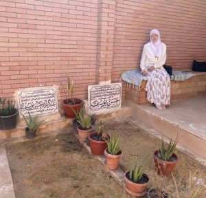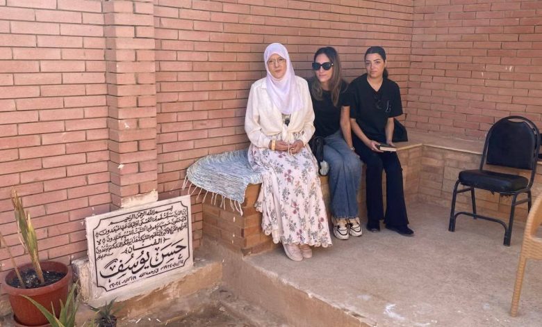 شمس البارودي تزور مدفن حسن يوسف وابنها في لحظات صمت