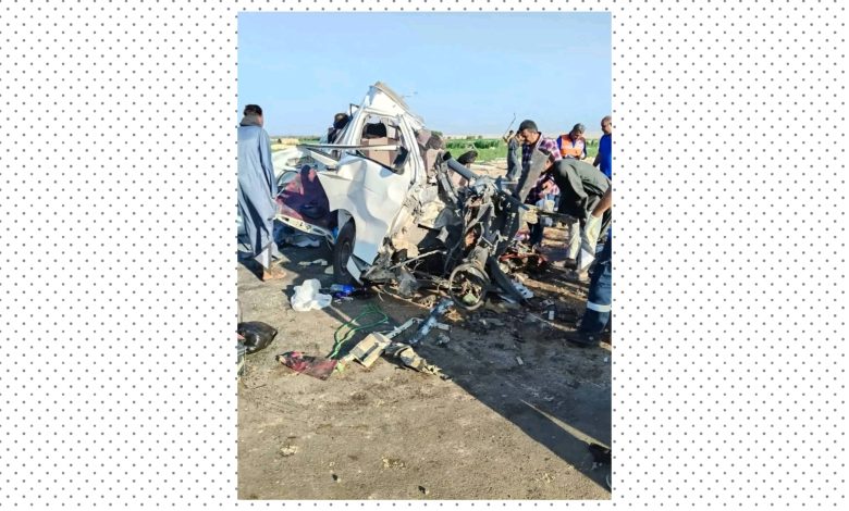 ● مصرع 8 شباب وإصابة 11 فى حادث تصادم بين ميكروباص وتريلا على الصحراوى الغربى بإسنا