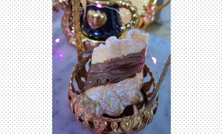 بعد ما تطهى نخرجها من الفرن ونضع لها المربي او شكولاطة الطهى وقطعها كما هي موضحة في الص