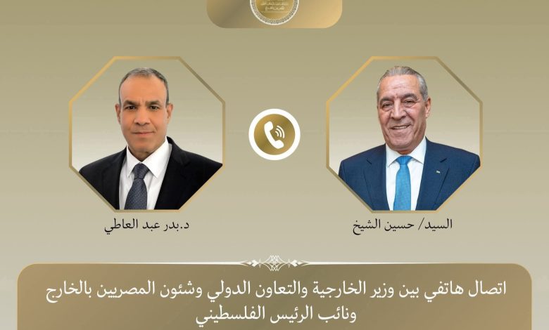 جرى اتصال هاتفي بين د. بدر عبد العاطي، وزير الخارجية والتعاون الدولي والمصريين بالخارج، والسيد حسين الشيخ، نائب الرئيس الفلسطيني، تم خلاله تناول تطورات الأوضاع في الضفة الغربية وقطاع غزة، فضلاً عن مجمل الأوضاع في المنطقة في ظل التصعيد العسكري الراهن.