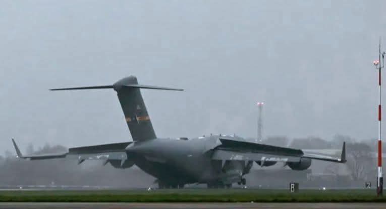 أمكن رؤية طائرة سي-5 غالاكسي أميركية على مدرج القاعدة التي نُظّم في محيطها تحرّك احتجاجي من