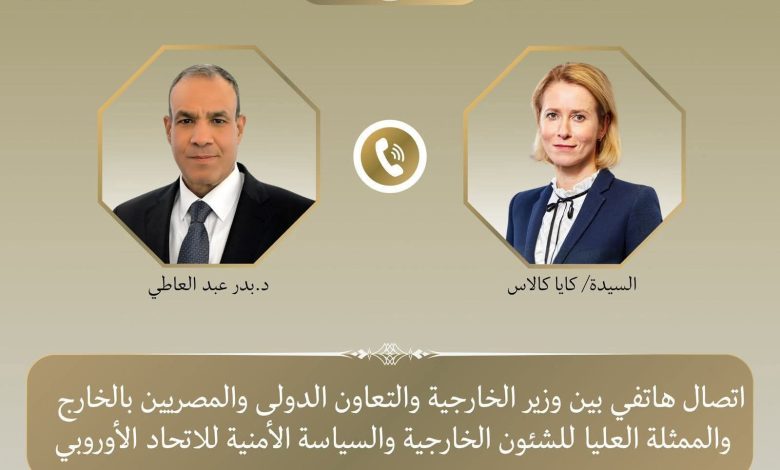 اتصال هاتفى كايا كالاس للاتحاد الاوربى مع الدكتور بدر عبد العاطى لمناقشة التصعيد بالمنطقة