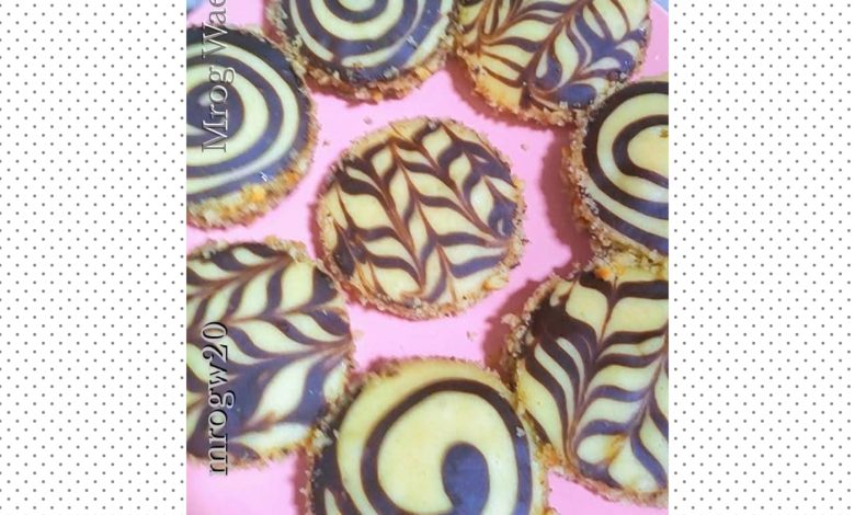 فى صنيه مدهونه زيت ننزل بالكبك دوائر ونزينها بكيك الكاكاو